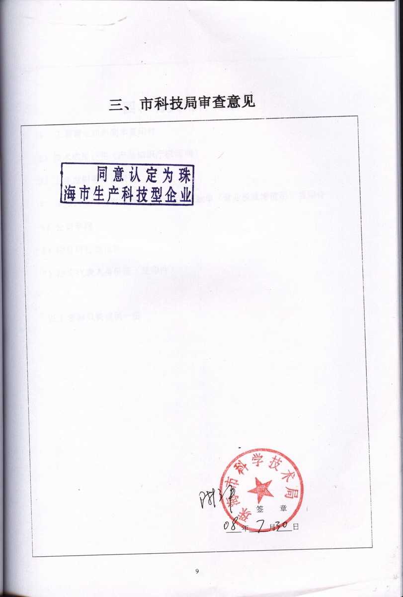資格證書 一、ISO9001:2008質(zhì)量管理體系認(rèn)證ISO9001:2008質(zhì)量管理體系認(rèn)證證書 二、廣東省民營科技企業(yè)資格證書民營科技企業(yè)資格證書 廣東省民營科技企業(yè) 三、珠海市生產(chǎn)科技企業(yè)證書生產(chǎn)科技型企業(yè) 珠海市生產(chǎn)科技型企業(yè) 認(rèn)定證書 生產(chǎn)科技型企業(yè)資格證書(以上圖片均可點(diǎn)擊放大) 2012-11-27 36270